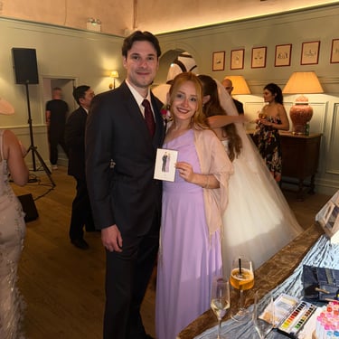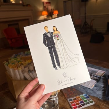 "Holly was such a big part of our day, and the guests could not get enough of her gorgeous portraits. She was professional, kind and focused for the entire day, and our guests all commented on the uniqueness and desire to have their own portrait to take home. Our bride and groom portrait will be going up on the wall, as we love it so much. If you are considering a live illustrator, there is nobody better than Painted by Powell! "