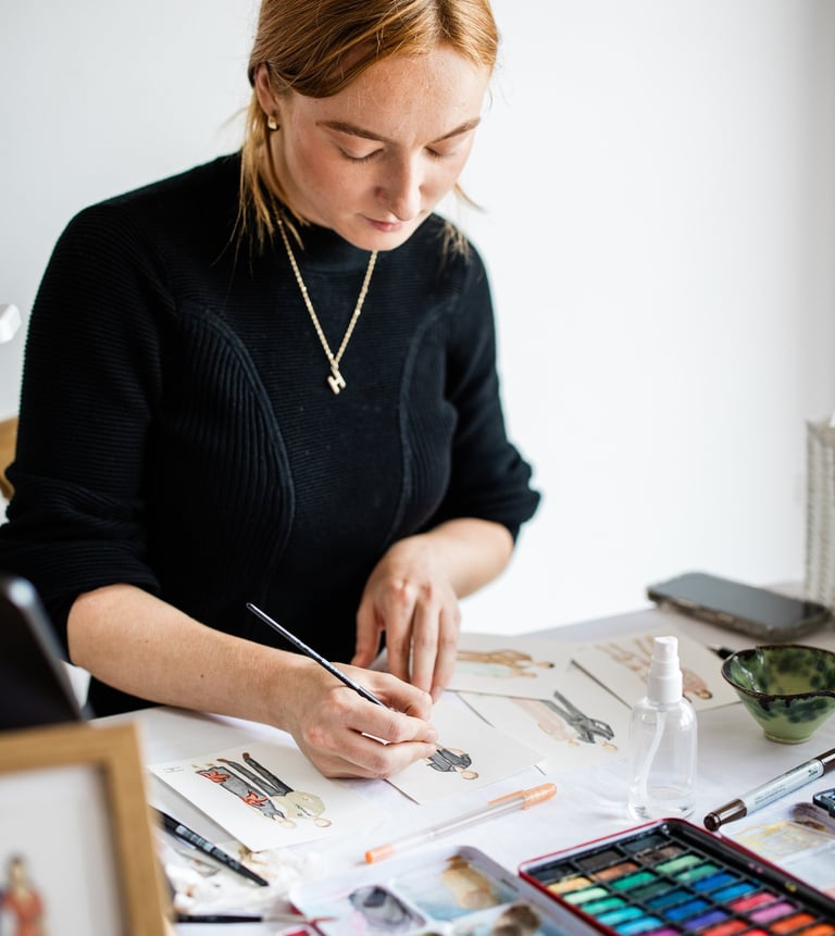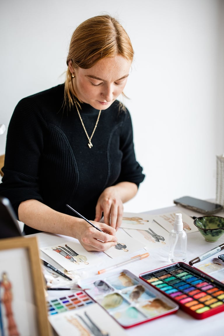 All our illustrations are all hand painted and glittered onto A5 card on-site. Ready for collection upon your departure.
