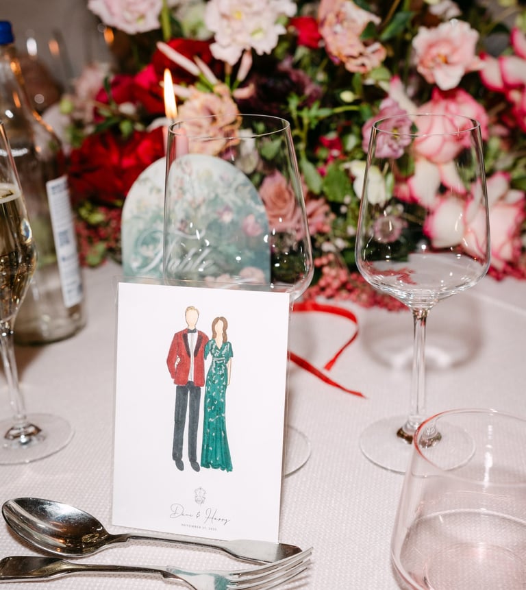 Relax, enjoy and soak up the celebrations while we get to illustrating your guests! Watch us capture those special moments.